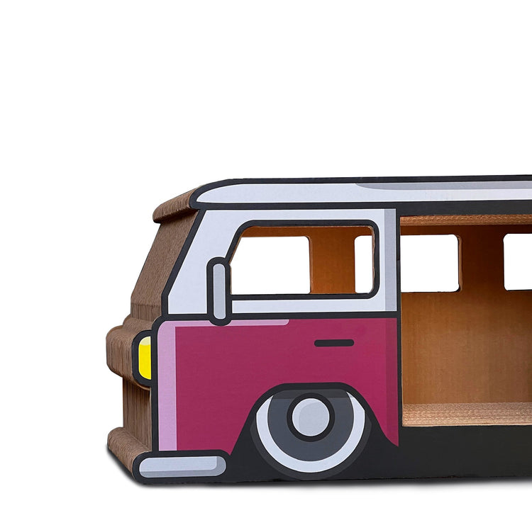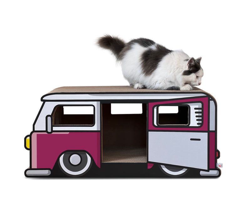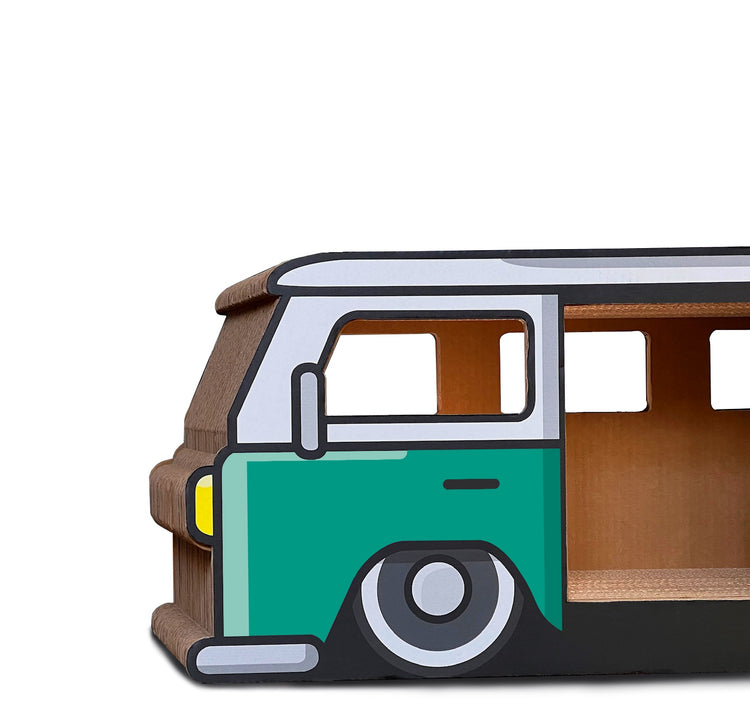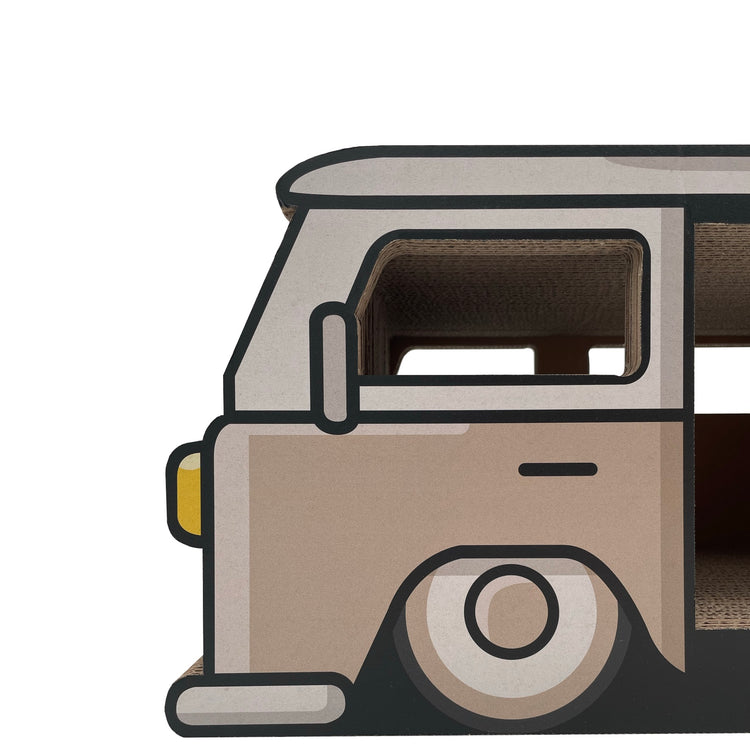 Die integrierte Bodenplatte verhindert das Verschmutzen des Bodens durch abgekratzte Pappreste oder aufgestreute Katzenminze. An der Unterseite befestigte Antirutsch-Füße vermeiden das Verrutschen, wenn mal wieder wild auf oder in unserem Kratzcamper XXL getobt wird.